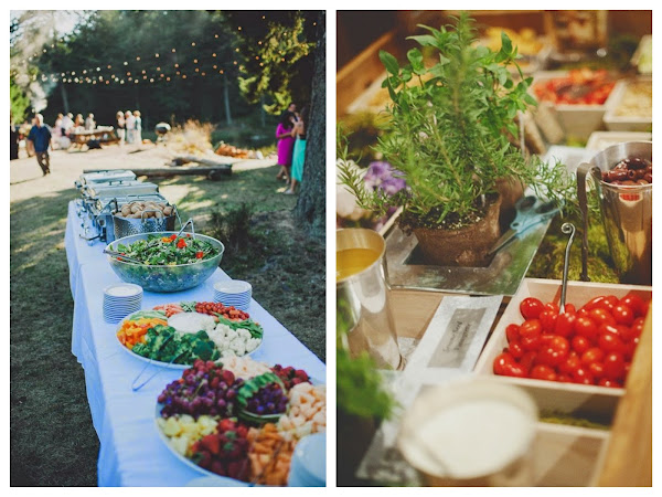 Opción 2: si tu boda es tipo buffet más informal, puedes darle un toque de distinción colocando diferentes estaciones para que los invitados puedan degustar lo que les apetezca. Una ensaladita, pan o hasta ¡unas ostras!