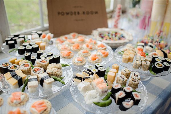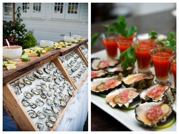 Opción 2: si tu boda es tipo buffet más informal, puedes darle un toque de distinción colocando diferentes estaciones para que los invitados puedan degustar lo que les apetezca. Una ensaladita, pan o hasta ¡unas ostras!