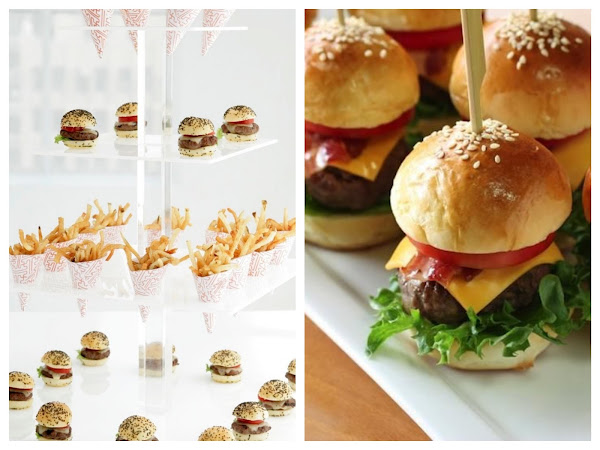Hoy en día hay un montón de opciones para la recena, un carrito de perritos calientes, mini hamburguesas, mini pizzas... ¿por qué todo mini? Pues porque la cosa va de ingerir las calorías necesarias para recargar las pilas y continuar bailando. Si fuera muy abundante o copiosa, los invitados correrían a buscar un asiento donde relajarse. Piensa en cosas sencillas, algo que pueda comerse sin tener que usar cuchillo y tenedor.