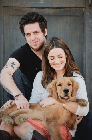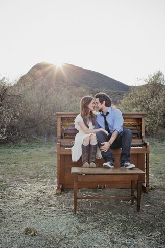 fotos con un piano, donde también incluyeron a su lindo perrito golden terriever.