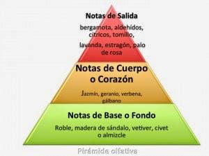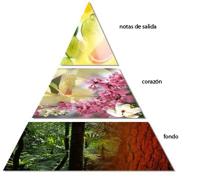 La pirámide olfativa es la mejor forma de entender la secuencia temporal en que vamos distinguiendo las notas, las secuencias de olores, de la fragancia y la concentración (cantidad) de los tipos de aromas.