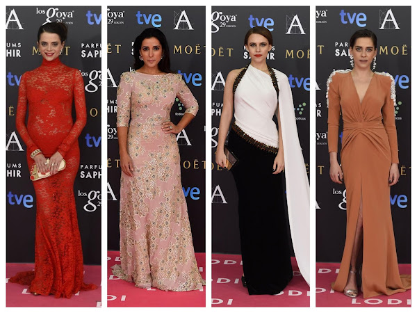 Mis preferidos por sus líneas sencillas, los de Cayetana Guillén Cuervo (The Name) y Marta Hazasen color dorado cuajado de paillettes firmado por Jorge Vázquez. La trenza despeinada de Cayetana, un acierto y es que ya sabéis lo que me gustan las trenzas