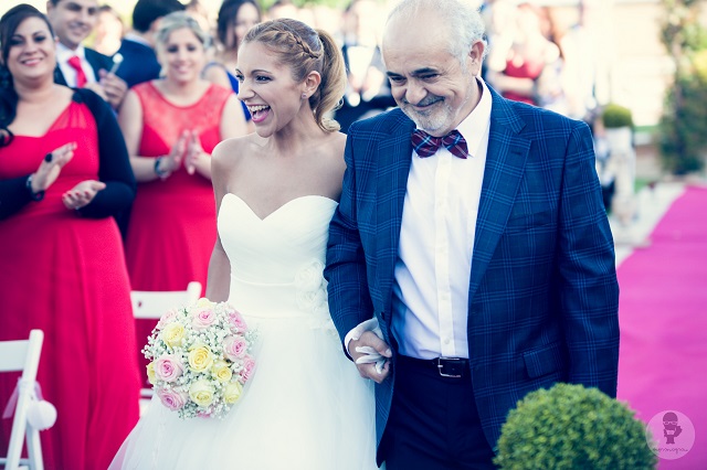 Laura, la novia, desde pequeña había soñado con ser una novia estilo princesa (quién no?), pero este tipo de vestido no iba con su estilo, así que si no encuentras tu vestido adáptalo a tu estilo. Ý así fue, el Modelo Zíngaro de Rosa Clara fue el elegido, pero con modificaciones, tijeretazo y acabo sin cola, y de corto. Feliz por llevar el modelo que ella tanto soñaba.
