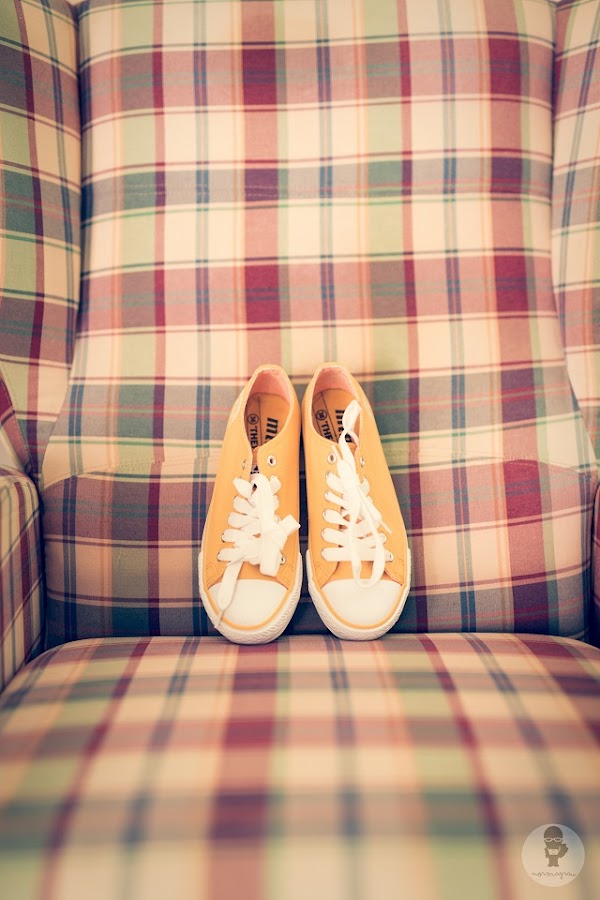 Guillé, el novio, no quería ser un novio tradicional, al igual que su boda tampoco lo sería, así que se decanto por un traje HUGO BOSS, con pajarita, y converse azules.