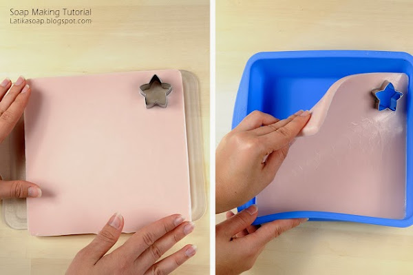 Pasado más o menos unos 15 minutos, sacamos el jabón del barreño para empezar a cortar el jabón con los corta pastas. Recuerda que contra más seco este el jabón más os va a costar cortalos