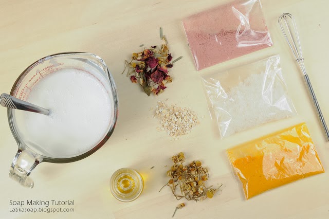 Empezamos derritiendo el jabón de glicerina en el microondas, una vez que este derretido, echamos la esencia que más nos guste y el colorante y removemos bien