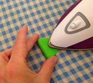 Para darles forma a los pétalos que irán alrededor del capullo necesitaremos hacer uso de la plancha. Cogemos el pétalo y por la parte trasera superior presionamos un poquito con la plancha, al retirar la plancha veremos que el pétalo se curva hacia fuera, le damos un poco de forma con las manos para que se quede la curva. Después aplicamos calor con la punta de la plancha en el centro del pétalo y con ayuda del pulgar presionamos después para que se quede la forma del pico de la plancha.