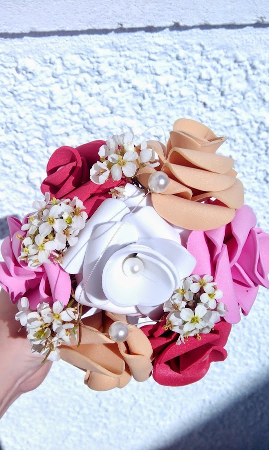 Mi ramo era para mi primita asi que lo hice pequeño y por eso el tallo se ve más finito, si queréis que quede más gordo y consistente solo tenéis que poner más flores al ramo. Con unas 12 rosas el ramo queda más bonito para una persona adulta.