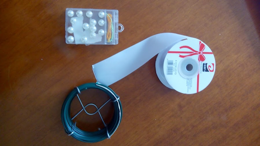 Esto es opcional, yo cogí un poco de cinta de pescar y le pasé unas perlas. Para que las perlas se quedaran donde yo queria hice un nudo y le puse un poco de silicona y despues pasé la perla hasta dejar el nudo dentro para que se quedaran bien pegadas al hilo. Luego pegué cada extremo del hilo debajo de un pétalo de una flor para así ocultar la unión del hilo con el ramo.