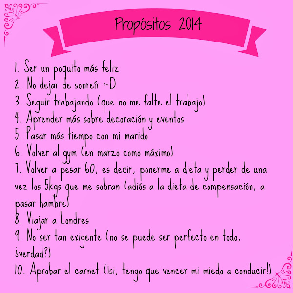 El último día del año compartí con vosotros a través de las redes sociales mis 10 propósitos para el 2014. Propósitos más o menos realistas que quizá no sea capaz de cumplir o que puede que vayan cambiando conforme transcurran los días pero que a día de hoy siguen siendo los mismos.