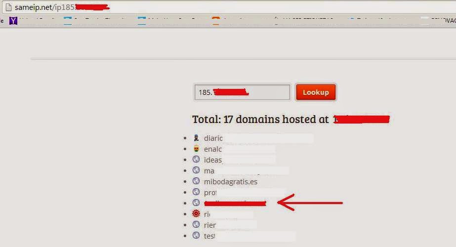 Lo siguiente que hice fue entrar en la web Sameip.net, en la cual introduciendo su IP di con 17 dominios vinculados a esa IP