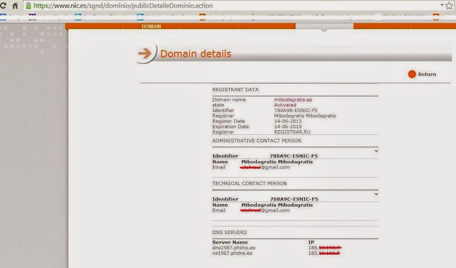Como veis pone claramente que Mibodagratis.es se registró el 14 de mayo de 2013, un año después de que yo creara mi blog, cuando hacía tiempo que era uno de los blogs de bodas más conocidos de España, cuando ya había realizado un evento para novias y cuando ya había lanzado mi revista de bodas. Imposible no saber quién era yo si estaba vinculándose al sector nupcial.