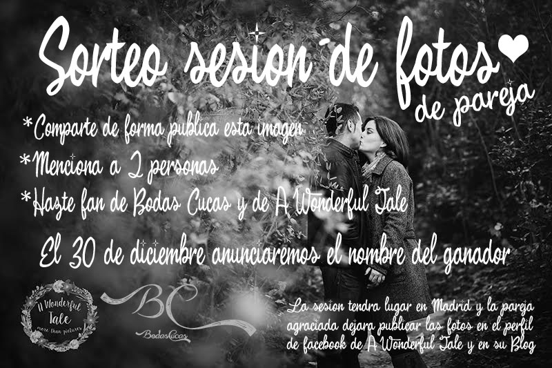 La sesión de fotos tendrá lugar en Madrid y la pareja agraciada dejara publicar las fotos de su sesión en el facebook y el blog de "A Wonderful Tale".