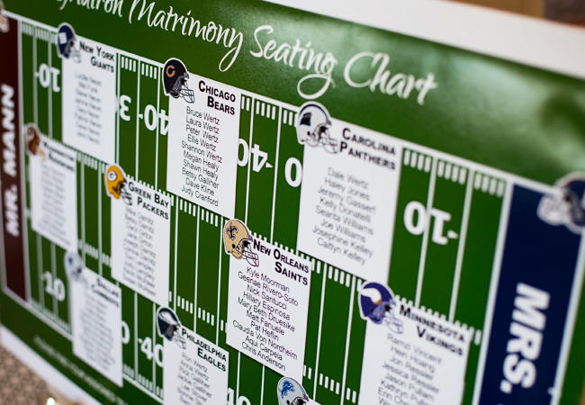 Podéis llamar a cada mesa como un deporte o equipo deportivo, o dentro de un mismo deporte elegir los nombres de los jugadores que más os gusten. En la primera fotografía veis unos meseros con forma de camiseta de una pareja muy cuca que hizo a la selección española la protagonista de los meseros de su boda. ¿A que es original?