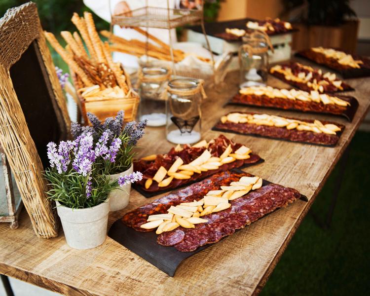 Una mesa donde ofrecer a los invitados como entrantes, un excelente surtido de ibéricos de calidad donde el rey es el jamón. Puedes incluir en este corner de ibéricos diferentes patés para satisfacer al paladar más exquisito.
