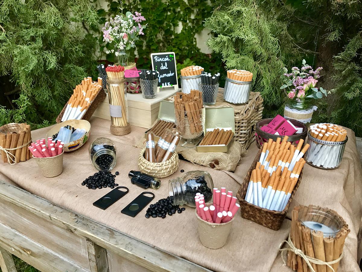 Puedes ofrecer a tus invitados diferentes puros y cigarros para dejarles sin palabras ¿Cigarros de sabores? sorprende a tus invitados con el corner de tu boda, con cigarros de chocolate, vainilla… encontrarás una gran variedad.