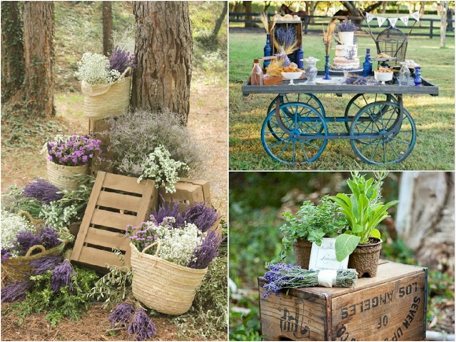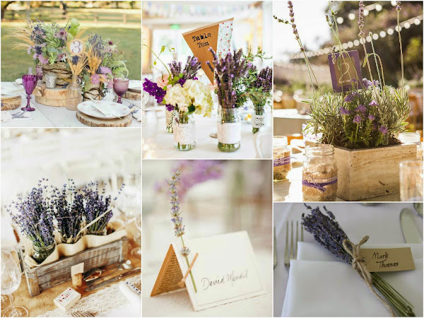 Si tenéis pensado decorar algunos rincones del aperitivo o la recepción, por ejemplo con un bodegón, una mesa de firmas o un candy bar, la lavanda quedará ideal y le aportará un aire más rústico.