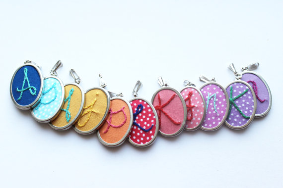 Colgante personalizado con tu inicial y bordado sobre tela 100 algodón. De venta en: Etsy