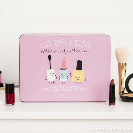 Caja de latón de lo más molona para guardar todas tus pinturas, sombras de ojo, perfiladores, máscaras de pestañas, coloretes y todo lo demás.