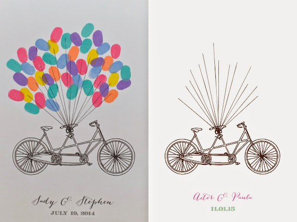 Lienzo de huellas dactilares: Un diseño de WeddingChicks con el que tener un original libro de firmas completamente gratis. Podéis personalizar el color de la bicicleta, el nombre de los novios y la fecha de la boda. La tipografía no es editable. Font: Ecuyer DAX y Bombshel Pro