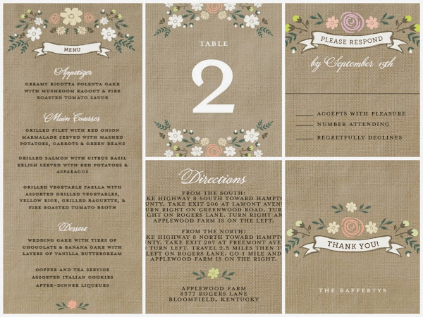 Además, también tenéis disponibles, meseros, etiquetas, sobres y tarjetas de menú a juego con vuestra invitación.