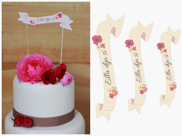 Cake topper: Una alternativa a los tradicionales muñequitos en las tartas nupciales de la mano de Nice Party y que apareció en el nº5 de la revista digital Tendencias de Bodas En la plantilla, también encontraréis banderines para cupcakes Formato: PDF