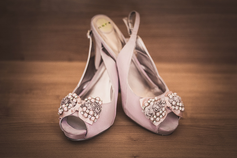 Lejos de unos zapatos blanco radiante de novia, ella eligió unos de fiesta de la marca Nora en color rosa palo, color predominante en su boda. Si por su vestido sintió un flechazo nada más verlo, con los zapatos no fue menos.