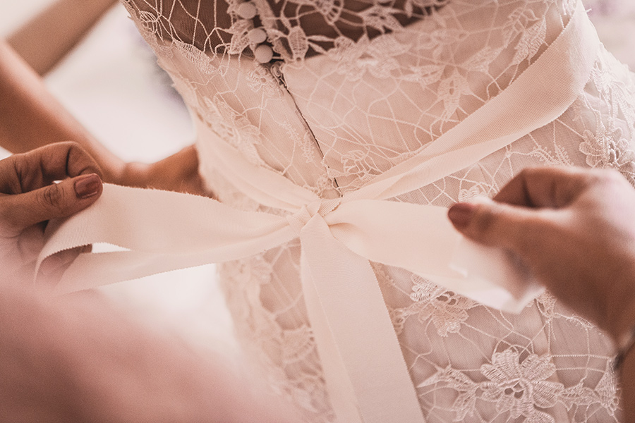 Y lo cierto es que el vestido estaba esperándola, era la única talla, un modelo de la colección 2009 y le quedaba como un guante, perfecto, simplemente tuvieron que retocar el bajo. Retales de tela que más tarde le serviría para confeccionarse su propio tocado DiY. Según Inma, aquel vestido llevaba desde 2009 esperando a que ella apareciera por allí.