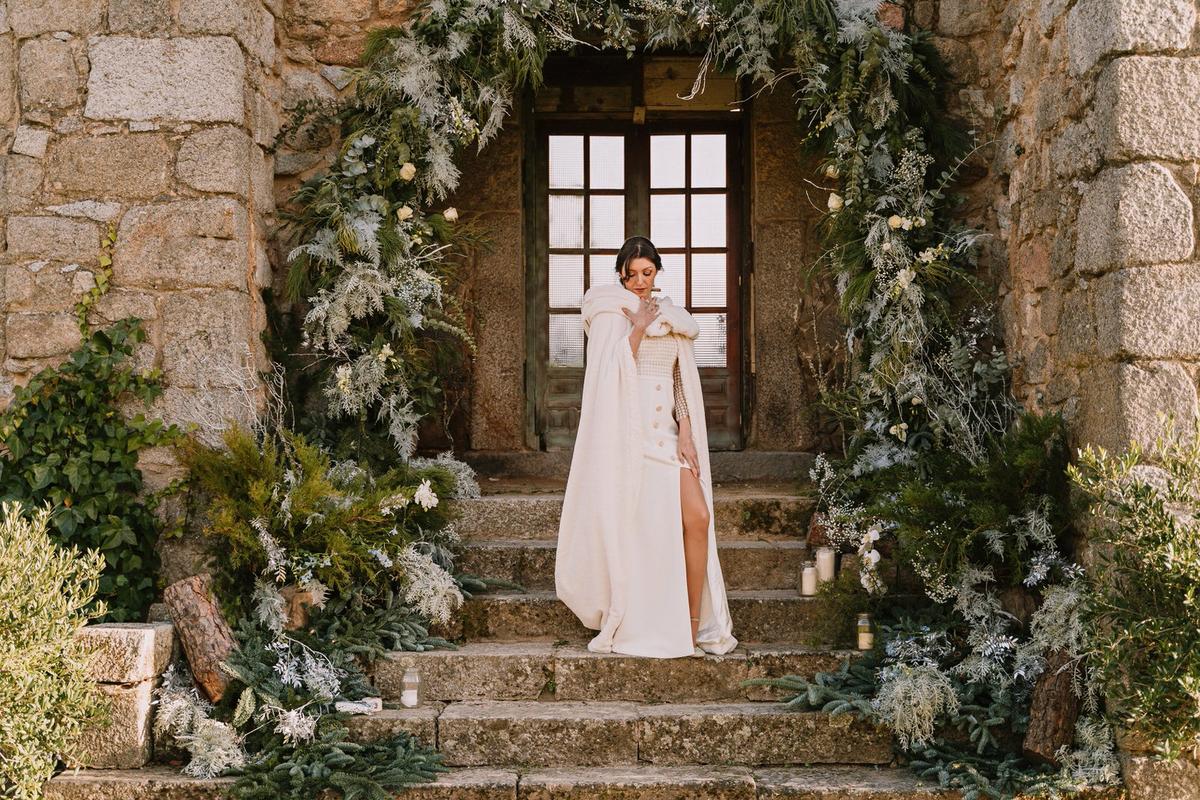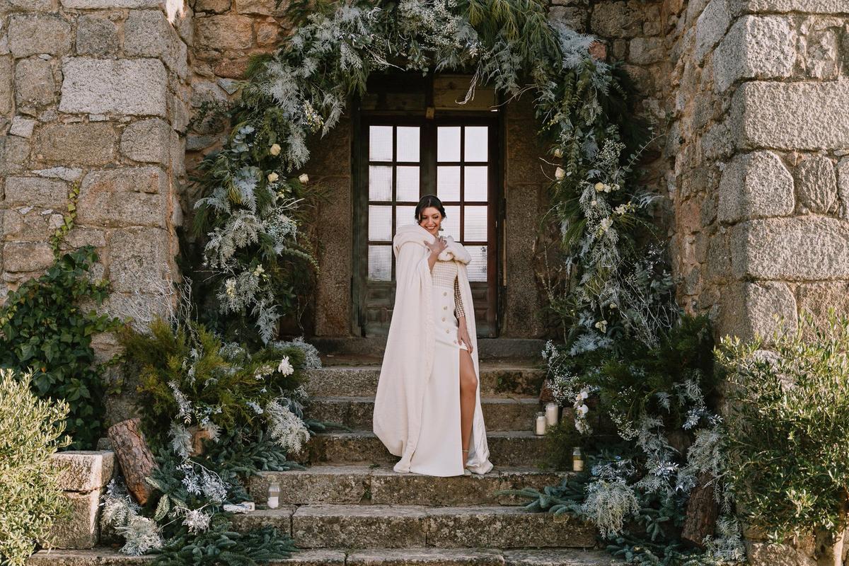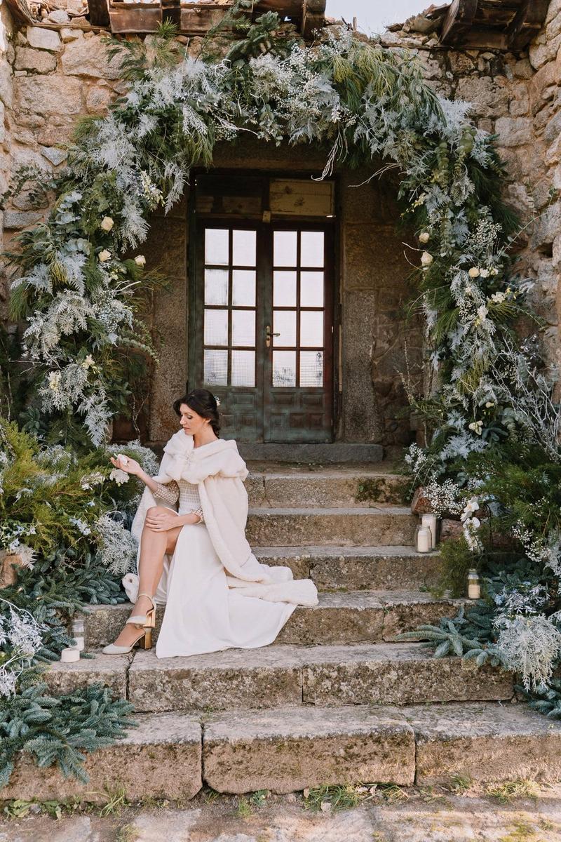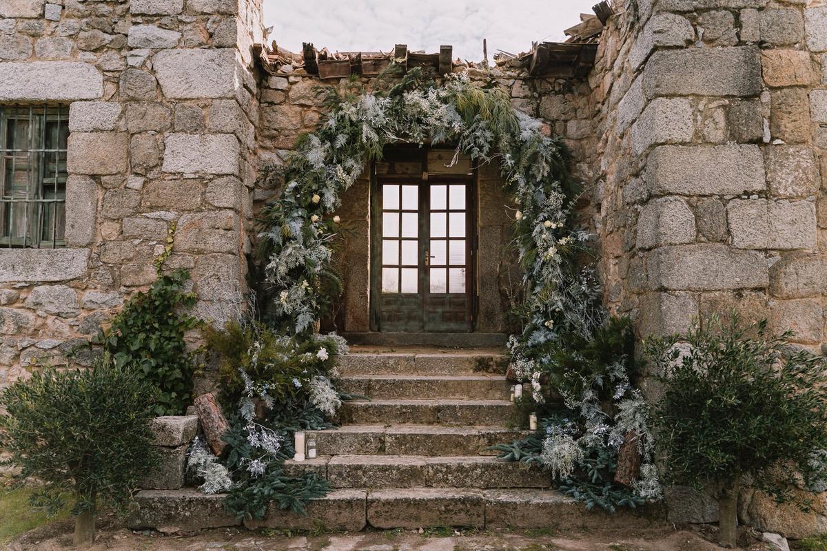 Escogimos dos escenarios principales para la inspiración de boda invernal fueron, unas ruinas que nos dan el punto de partida hacia nuestra historia, donde los adornos florales toman un importante protagonismo, nuestra protagonista se siente feliz rodeada de sus flores y plantas de invierno.