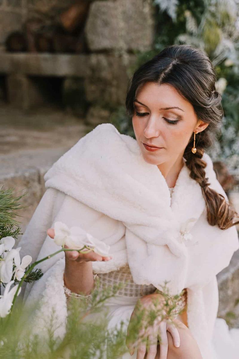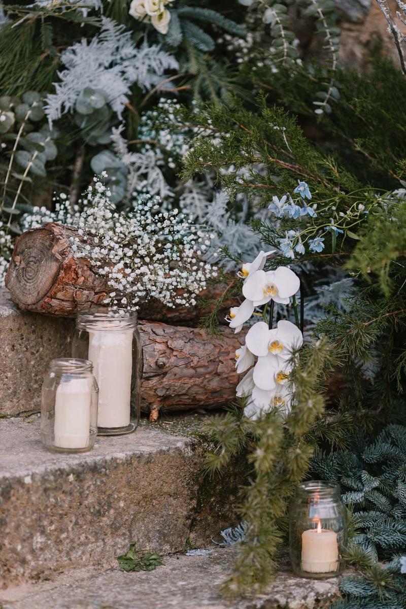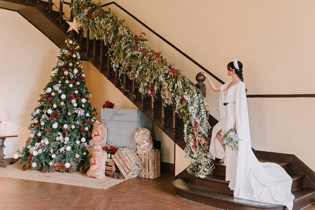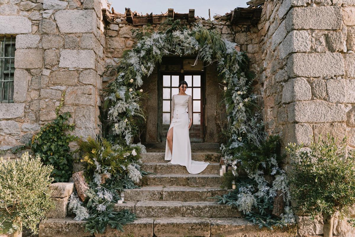 Escogimos dos escenarios principales para la inspiración de boda invernal fueron, unas ruinas que nos dan el punto de partida hacia nuestra historia, donde los adornos florales toman un importante protagonismo, nuestra protagonista se siente feliz rodeada de sus flores y plantas de invierno.