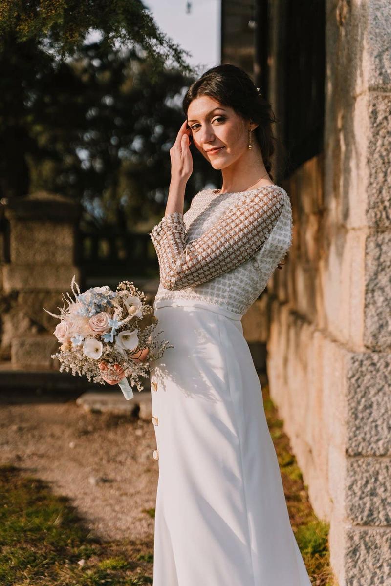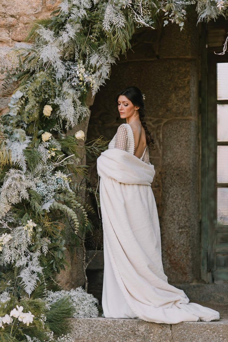 Si estás buscando un look de novia sencillo y original para casarte durante los meses de otoño e invierno, tendrás que elegir algo más cálido como una manga larga, capelinas o abrigo para evitar pasar frío.