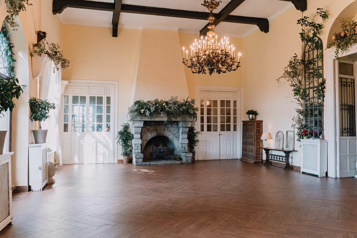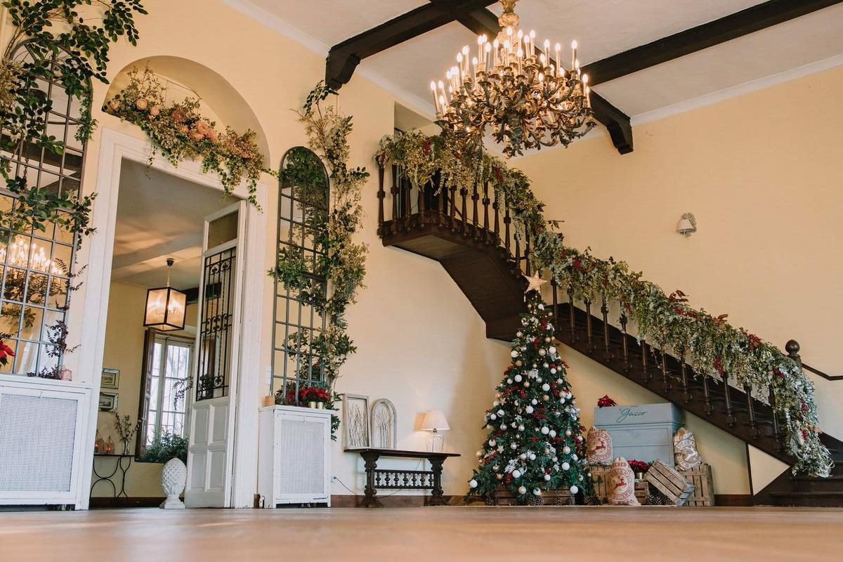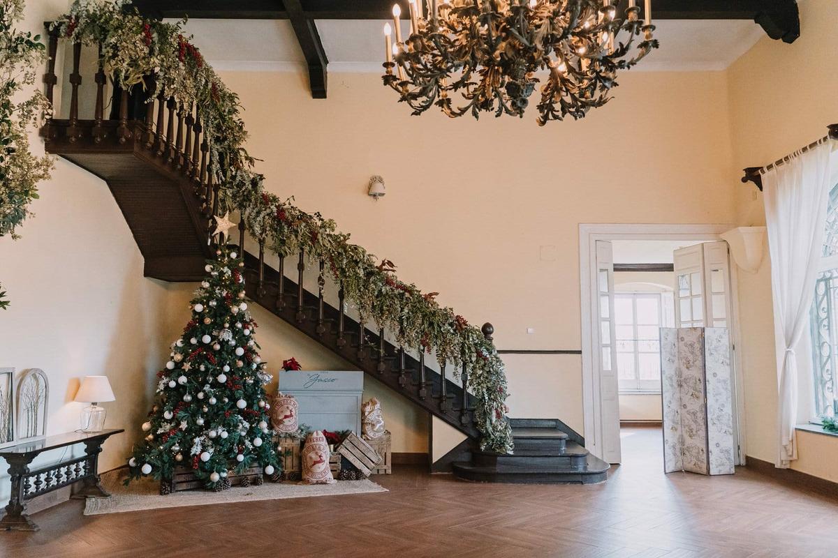 El otro escenario elegido es el interior marcado por el gran salón con chimenea, decorado para la ocasión. Y los encantadores rincones y espacios que albergan la casa palacio, habitaciones con fondos atractivos, grandes ventanales que dejan pasar una luz invernal maravillosa.