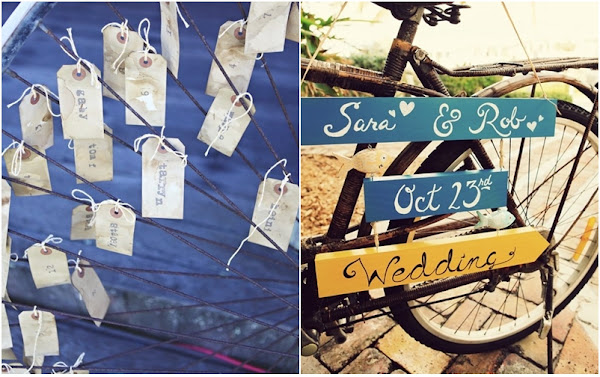 Personalmente creo que es una idea muy original, podéis tener bicis por vuestro espacio indicando cada rincón, como elemento decorativo en invitación y minutas, como decoración dejando unas flores en la cesta o incluso podéis utilizar las ruedas para decorar paredes o colgarlas. Como siempre os digo en los temas de decoración hay veces que un objeto cotidiano crea un ambiente más original que otro objeto más difícil de encontrar.