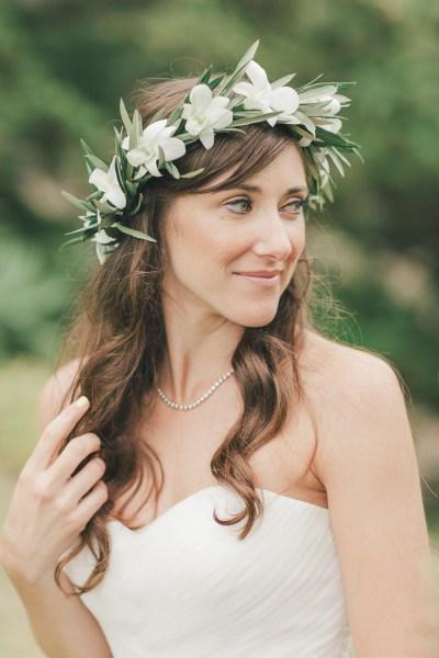 Coloca una corona de flores sobre tu pelo para verte realmente hermosa.