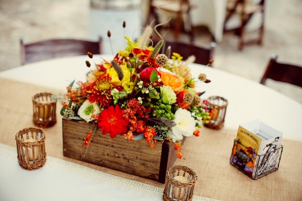 tiene esta estación, como en los elementos que la componen.Los colores naranjas, marrones y rojizos nos aportan un toque cálido a toda la boda.