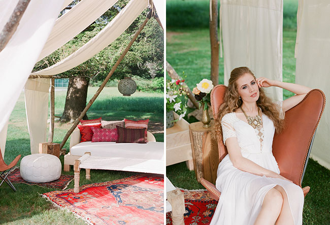Inspirada en esta tendencia que me parece muy evocadora y que nos recuerda a los viajes llenos de aventuras,se ha elegido dicha temática para la celebración de una boda.Por supuesto no debe faltar la tienda de campaña,aquí el textil es uno de los protagonistas junto al enclave en el exterior con toques étnicos y elementos naturales como la madera y una paleta de colores basada en tonos cálidos como los rojos y los fuxia.