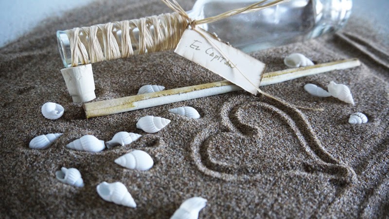 Después de deliberar y buscar soluciones para que la invitación y todo cupiese en la botella de miniatura.