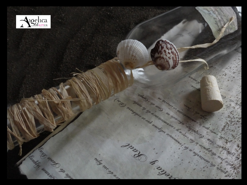 Lo que mas costó fue trabajar el papel de la invitación para que cupise en la botella ya que esta tiene un diámetro de 1cm, y que este al abrirlo volviese al mismo tamaño para que los invitados vuelvan a guardarla en su interior.