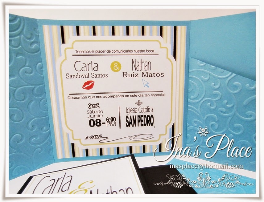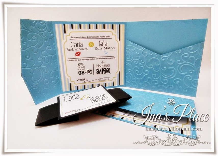 Un concepto moderno donde se combinan la aficción de novio por la tecnología y la de la novia por el maquillaje fueron las premisas para el diseño de esta invitación.