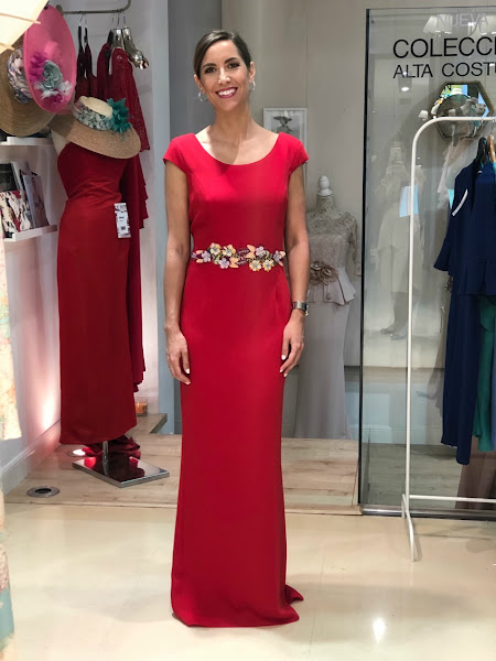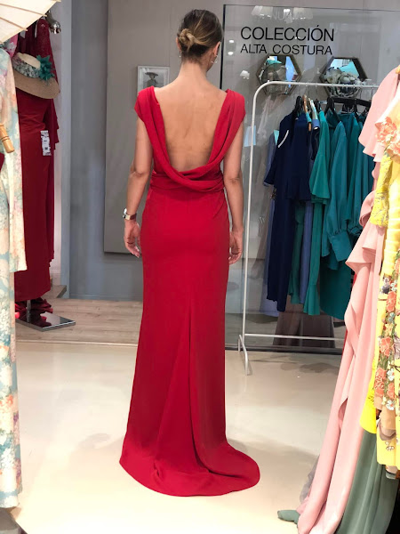 El primer vestido, el rojo, es el clásico de invitada de boda que quiere ir muy guapa pero no demasiado llamativa, a pesar de su color (por ejemplo, la hermana de la novia o novio, o incluso la madre de uno de ellos). Creo que es muy elegante y muy favorecedor, y la espalda al aire le da un toque moderno.