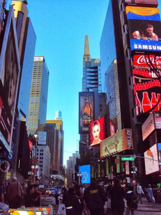 El día que llegas a NY sientes una mezcla de ilusión y ganas locas de recorrer la ciudad, pero también de cansancio debido al viaje, pues la diferencia con España es de 6 horas....y un poquito se nota. En vuestra primera tarde/noche en NY podéis visitar Times Square, centro neurálgico de la ciudad, una explosión de luces de color, taxis, anuncios, gente... La Grand Central Terminal, la estación de metro más antigua de la ciudad y escenario de múltiples películas, y poneros a los pies del Edificio Chrysler, para mi el más bonito de la ciudad.