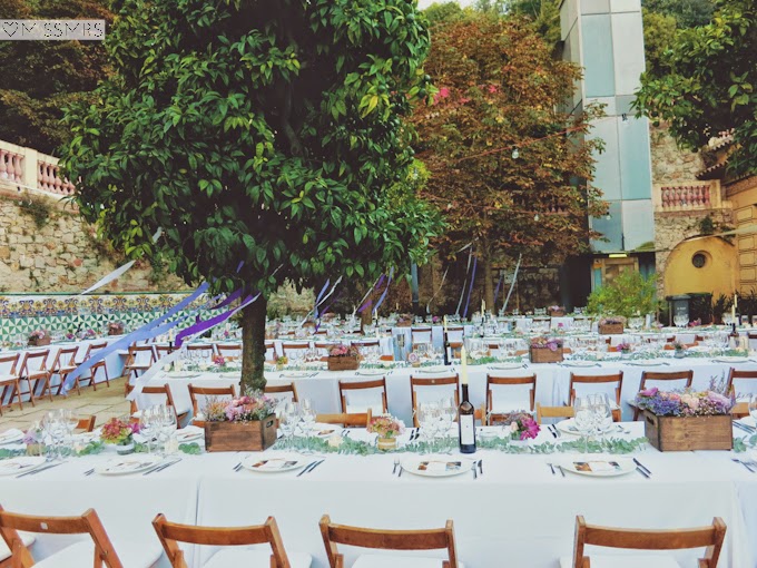 El espacio quedó precioso con estas tonalidades tan otoñales y tanto los novios como los invitados pudieron disfrutar de una maravillosa velada al aire libre, tuvieron mucha suerte porque esa misma madrugada al terminar la boda empezó a llover a cántaros en Barcelona y todavía no ha parado...