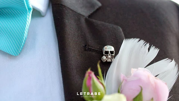 Félix llevó un traje un traje negro hecho a medida de Dorrego Novoa, camisa blanca a medida también de algodón natural. No llevó chaleco ya que no era un traje de novio y porque no le gusta nada, la pajarita confeccionada en seda italiana en color azul tiffany´s a juego con los colores de la boda...y la guinda del pastel fue una calavera que llevó en la solapa del traje.