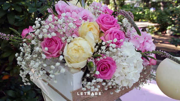La decoración fue obra de Esther de La Flor de Cerezo, supo llevar a cabo todo lo que pedí y nos entendimos a las mil maravillas, además puso mucha ilusión y una dedicación especial porque teníamos muchas ideas en común. Lámpara de araña negra , dos sillas tapizadas en color negro y una alfombra en tono rosa pastel a juego con decenas de rosas de pitiminí e tonos pastel...¡¡de ensueño!!