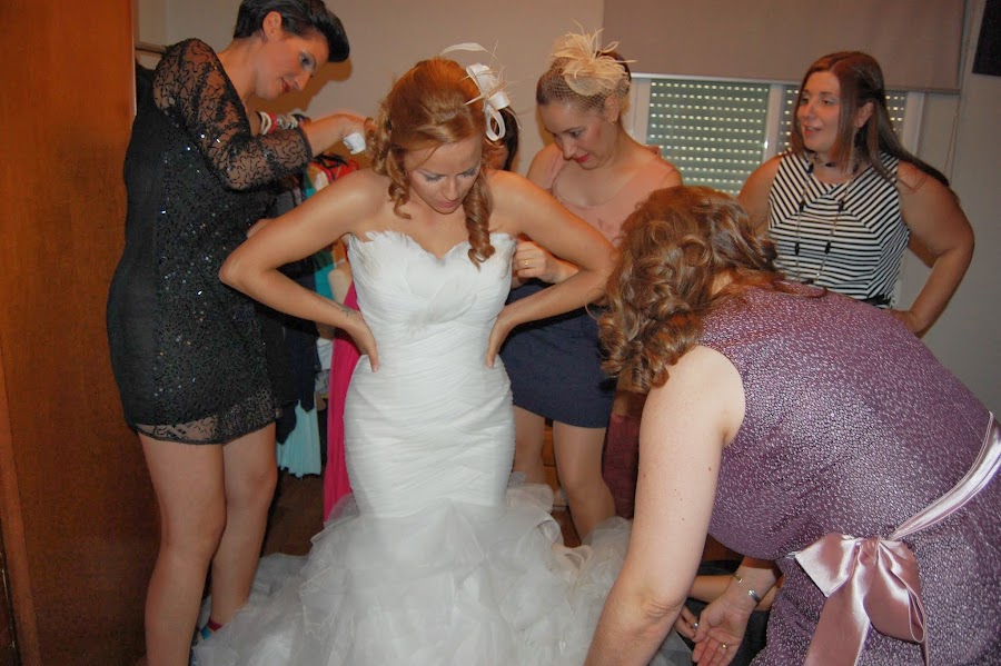 Llevábamos viviendo juntos mucho tiempo, así que decidimos pasar hasta el último momento juntos en nuestra casa. El enlace fue a las 18:30h y el se fue de casa dirección a casa de su madre a las 15:00...así que imagina, tuvimos una habitación anulada con mi vestido todo el día.