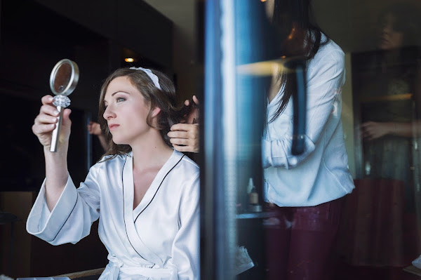 Durante el proceso de más de tres horas que costó todo aquello (hubiera jurado que sólo habían pasado como 1 y media), fueron pasando por allí mi cuñada M, mi madre, mi hermana N (que tuvo que volver a lavarse el pelo después de no hacerle ni puñetero caso en una peluquería cercana), mi amiga S y finalmente mi padre. Todo mientras los fotógrafos y videógrafos de Efecerosiete (David Naval, Yasmina Barbero, José Merchan e Irene Rubio) inmortalizaban el momento ya que mi hermano J, fotógrafo del estudio y encargado de nuestro pre y postboda, obviamente no podía ocuparse de ello.
