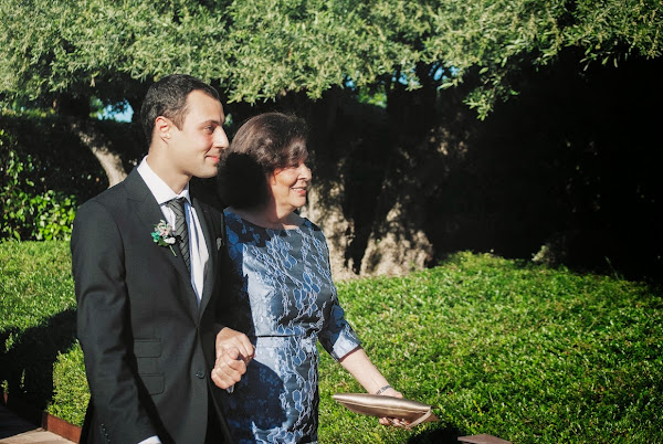 Cuando mi padre y yo llegamos, Alejandro, la persona que estuvo a cargo de nuestra boda en la finca y a quien le tenemos un gran cariño por su esfuerzo y dedicación desde que le conocemos, nos recibió e indicó el camino (que buena falta me hacía porque no hacía más que tropezarme con el vestido de lo nerviosa que estaba).