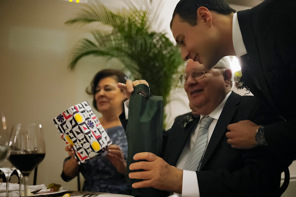 Ya en la cena, que se celebró en un salón precioso, todo estaba riquísimo, aunque ya estábamos llenos por el cóctel y los novios estuvimos visitando todas las mesas para intentar atender a nuestros amigos y familiares. Durante ese rato hubo varios momentos clave: los regalos a nuestros padres y hermanos, el regalo a mi abuela (la única que tenemos), el momento en que le regalé el ramo a mi amiga S y, sobre todo, el discurso que preparó mi hermano.