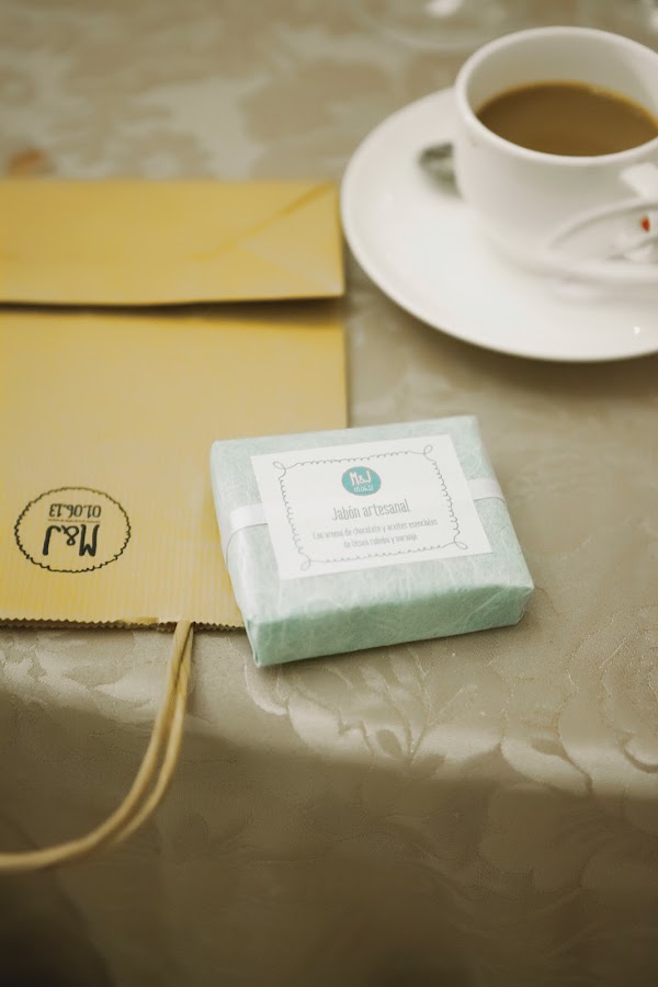 Como detalles para los invitados repartimos jabones artesanales (para ellas) y mermelada de fresa (para ellos), ¡Todo hecho en casa por la que escribe esto!