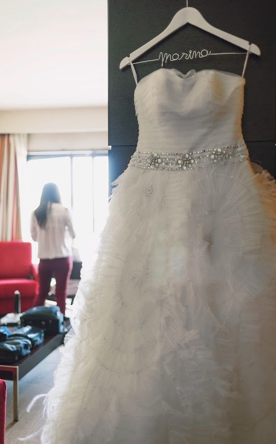 Como a media mañana los dos nos separamos: ellos se fueron hacia el Hotel Barceló Aranjuez (en el que pasaríamos la noche de la boda) con todos los bártulos para el novio y yo me fui a reunirme con mis padres para ir a por mi vestido de novia a la tienda de Aire Barcelona de la calle Conde de Aranda de Madrid.